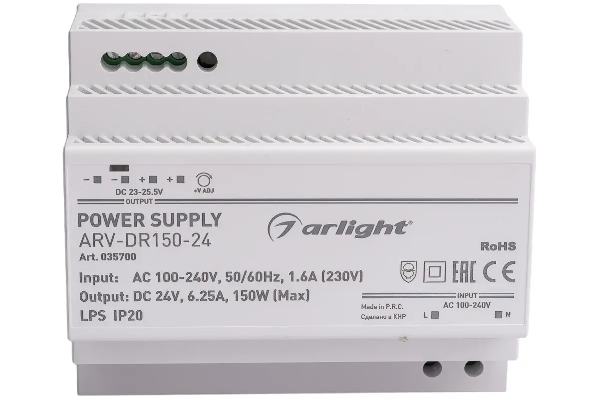Дополнительные технические характеристики блока питания Arlight ARV-DR150-24: