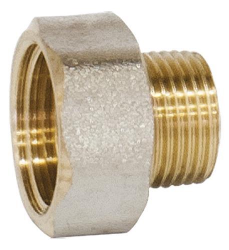 Латунная никелированная футорка I-TECH FM НР-ВР 1 1/4"х 1 1/2" для перехода с внутренней резьбы большего диаметра на наружную резьбу меньшего диаметра.