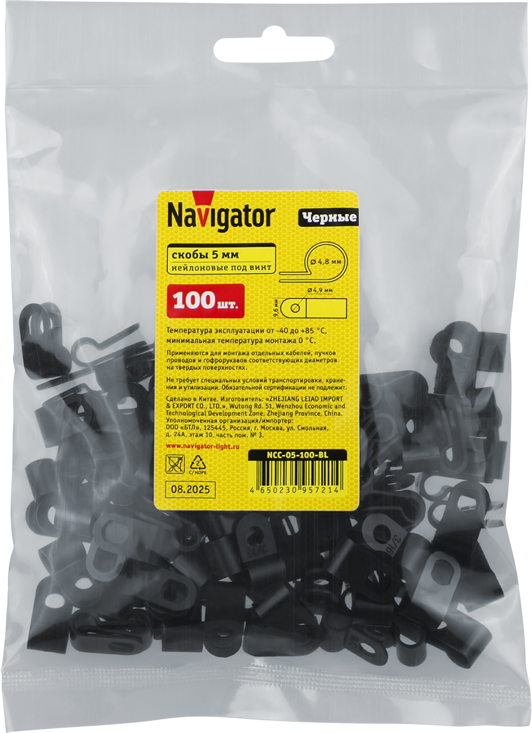 Нейлоновые скобы Navigator NCC — идеальный выбор для надежного крепления кабелей и проводов! Используются дома и на производстве, подходят для стен, полов и потолков. Быстро устанавливаются винтами или саморезами. Изготавливаются из огнестойкого нейлона 6, выдерживают температуру от -40°C до +85°C.