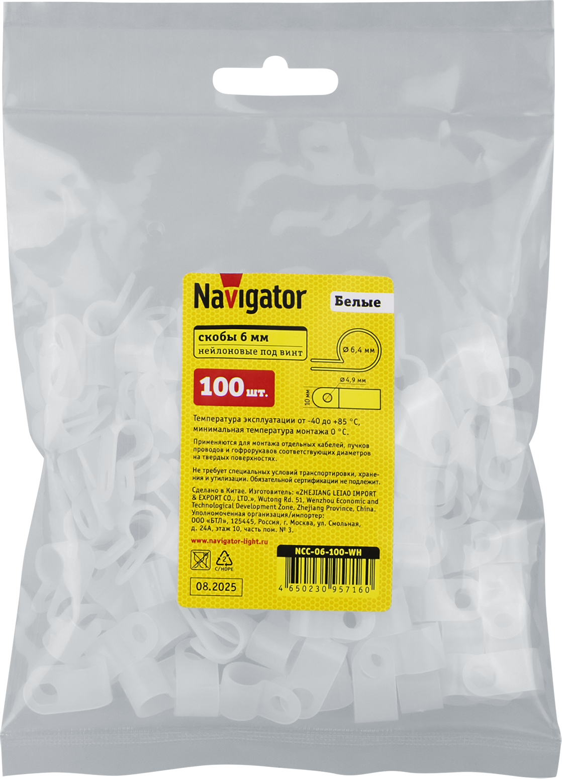 Нейлоновые скобы Navigator NCC — идеальный выбор для надежного крепления кабелей и проводов! Используются дома и на производстве, подходят для стен, полов и потолков. Быстро устанавливаются винтами или саморезами. Изготавливаются из огнестойкого нейлона 6, выдерживают температуру от -40°C до +85°C.