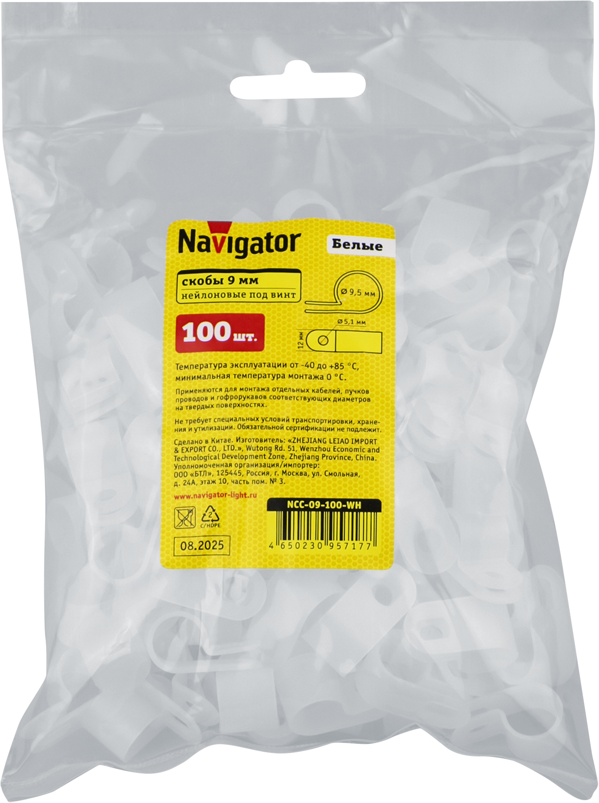 Нейлоновые скобы Navigator NCC — идеальный выбор для надежного крепления кабелей и проводов! Используются дома и на производстве, подходят для стен, полов и потолков. Быстро устанавливаются винтами или саморезами. Изготавливаются из огнестойкого нейлона 6, выдерживают температуру от -40°C до +85°C.