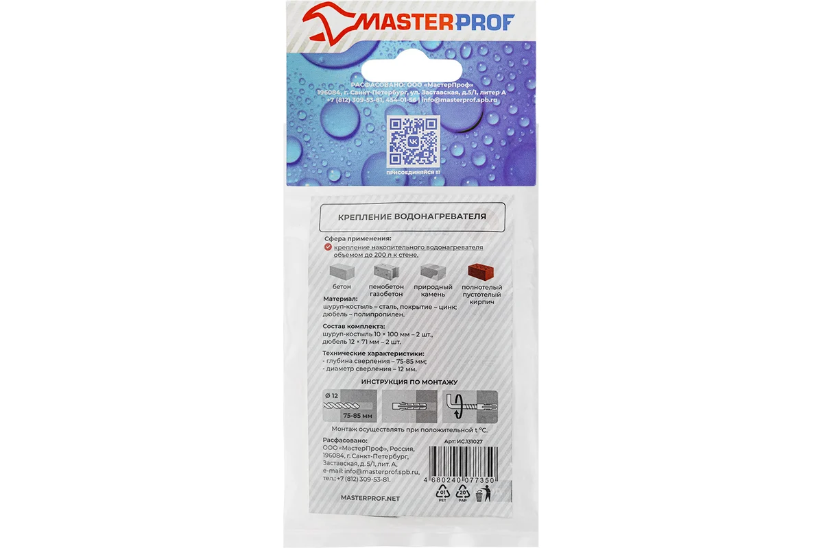 Набор для крепления водонагревателя (бойлера) до 200 л универсальный (шуруп - костыль 10 х 100, 2 шт.) предназначен для надежного крепления бойлера объёмом до 200 л к стенам из кирпича, пустотелого кирпича, бетона, природного камня, газобетона, пенобетона и гипсокартона. Обеспечивает устойчивую фиксацию и долговечность монтажа.