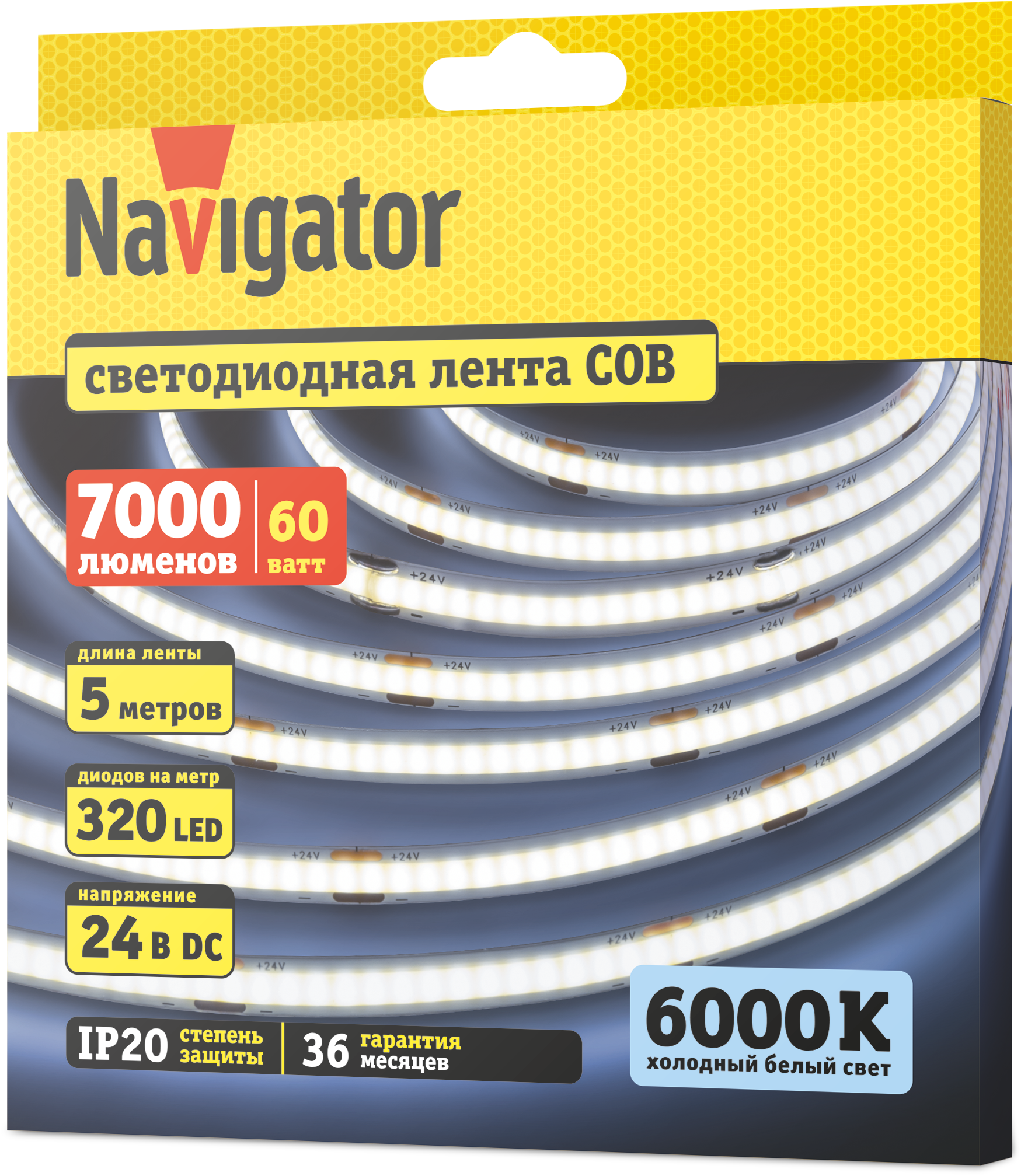 Лента Navigator 24V СОВ 12Вт 6000К IP20 бухта 5м белая легко крепится к различным поверхностям, а благодаря гибкости и отсутствию нагрева во время работы ей можно декорировать разнообразные конструкции и предметы, разрезая на участки необходимой длины.