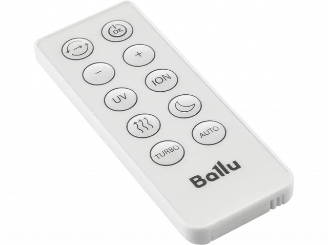 Пульт ДУ для Ballu Home Pro ASP-200 предназначен для управления прибором на расстоянии, имеет красивый внешний вид, компактные габаритные размеры, тем самым удобно лежит в руке, имеет возможность изменять скорость вращения вентиляторов, температуру и переключаться между режимами прибора, также пульт способен вкл/выкл УФ-лампу.