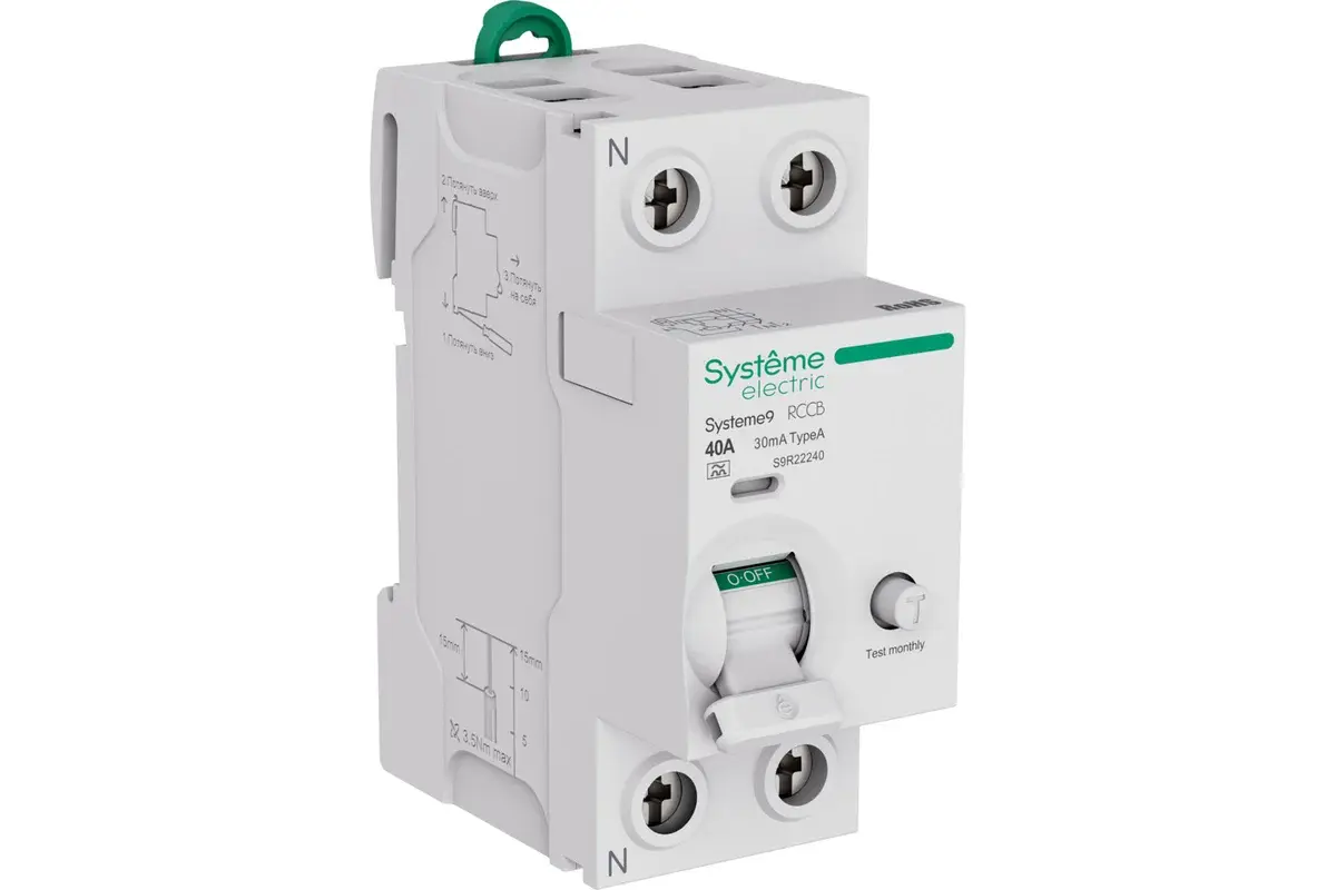 УЗО Systeme Electric 2П 40А/30мА предназначен для защиты людей от токов утечки при прямом (10 и 30мА) и косвенном (100мА) прикосновении к токоведущим частям, а также для защиты электроустановок от возгорания (300мА). Принцип действия - электромеханический. Нейтраль слева. Оснащен двойными безопасными клеммами раздельного монтажа проводников, механизмом мгновенной коммутации, индикатором состояния контактной группы и срабатывания по причине возникновения тока утечки.